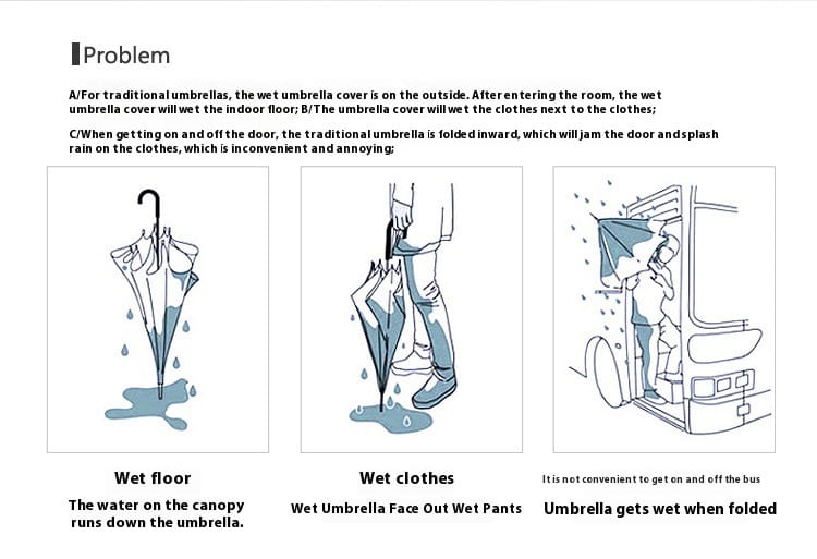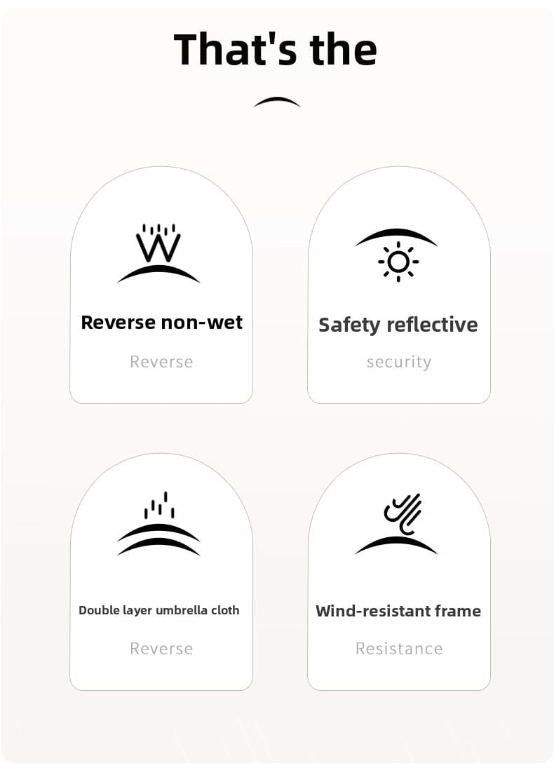 UNIQUE INVERTED DESIGN: The inverted umbrella design is the perfect addition to your rain gear. The special reverse folding design keeps the rain on the inside of the umbrella.
